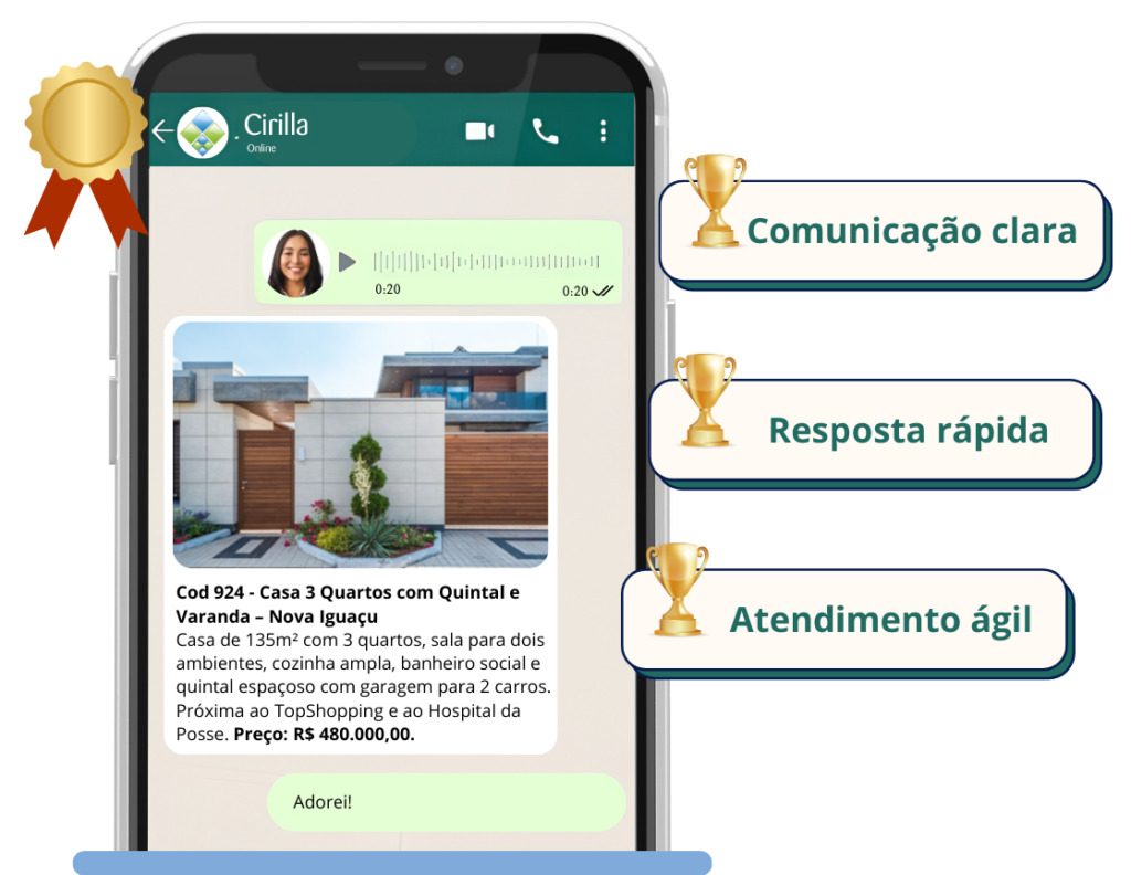 Nossas soluções, como a Cirilla, fortalecem a comunicação pelo WhatsApp, ampliam a capacidade de atendimento e aumentam a conversão de leads com respostas imediatas e fluxos inteligentes. Cada interação se torna uma oportunidade concreta de negócio, garantindo mais produtividade para corretores e uma jornada de atendimento mais fluida para o cliente final.